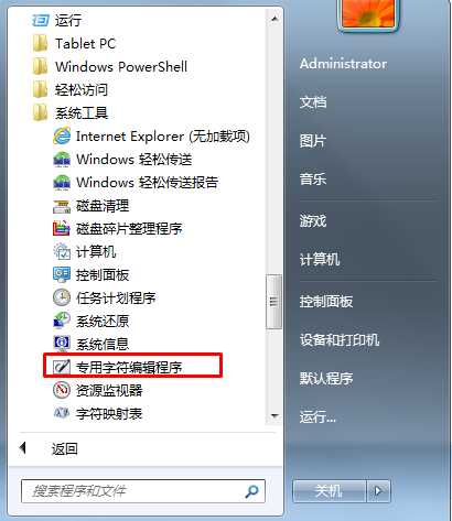 1、打开开始菜单→所有程序→附件→系统工具,然后选择打开专用字符编辑程序;