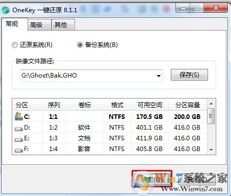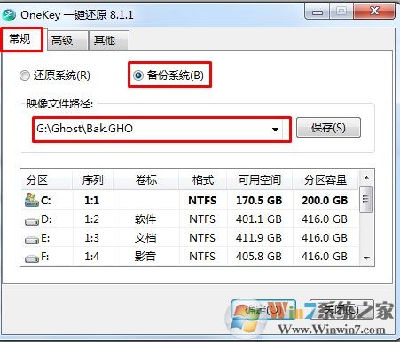 2、返回到常规选项,选择备份系统,然后选折好备份路劲,或者默认这个路劲也行,但是记住这个文件夹,千万不要去删除