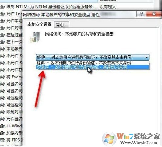 9、然后我们依次点击:本地策略—安全选项—网络访问:本地账户的共享和安全模型,并双击“网络访问:本地账户的共享和安全模型”
