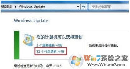 4、在这里,有两种安装方法可供选择,分别是Windows Update自动更新及手动安装,推荐使用前者,下载安装反而很麻烦。选择Windows Update后,点击可选更新。
