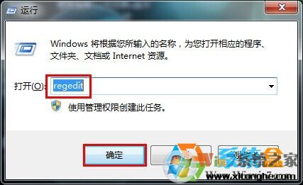 们需要先打开注册表编辑器,点击右下角开始菜单,然后选择“运行”,并输入注册表命令“regedit”;