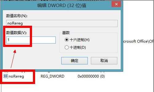 如果找不到NoRereg这个注册表,那就自己建一个DWORD(32位)值,命名为NoRereg,然后将数值数据改为1!
