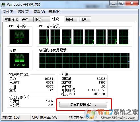 1、打开任务管理器,然后在性能中点击“资源管理器”;