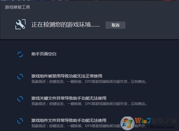 3,打开游戏修复,软件就能自动检测游戏所存在的问题,等待检测完成,点击修复即可