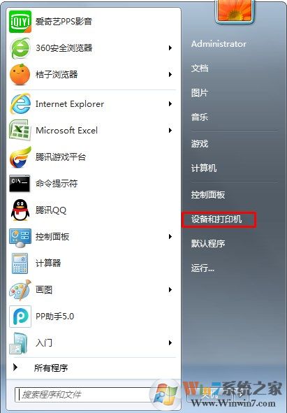 1、在开始菜单打开设备和打印机,找不到先打开控制面板,然后选择设置和打印机
