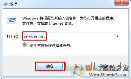 5、完成打印机添加后,把打印机设置为共享。接着再打开print spooler服务,使用组合键(win键+r)打开运行窗口,输入services.msc,点击“确定”按钮继续,