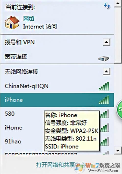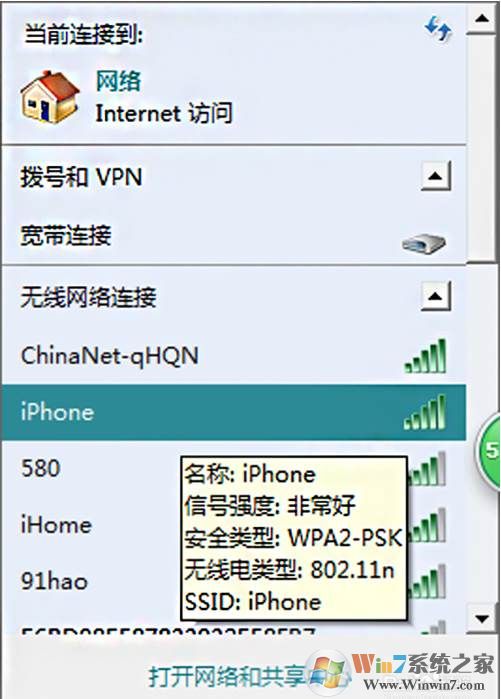 1、点击右下角的无线图标,然后我们就可以看到手机开启的热点了;