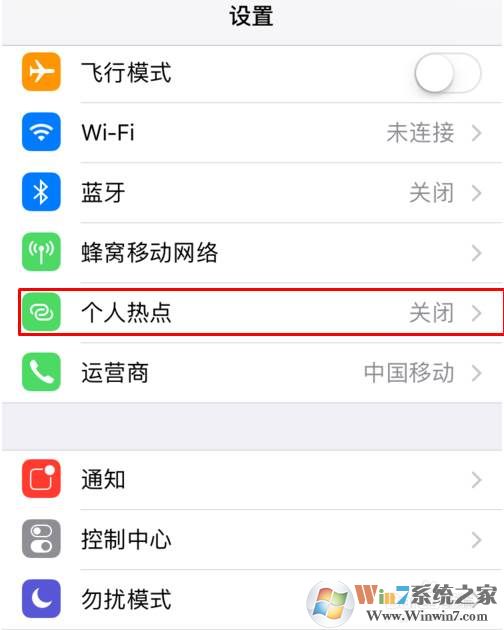 1、以iphone为例,进入设置后,我们可以看到热点选项,点击进入
