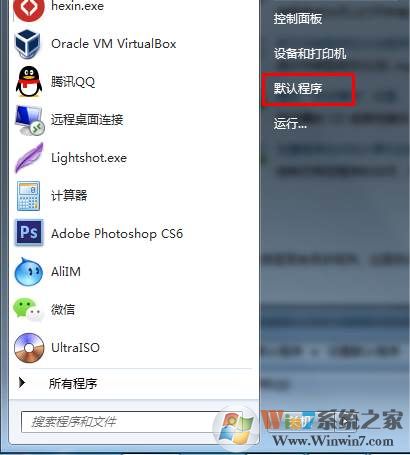 1、出现这个问题,是操作系统的关联程序失效了。从开始菜单打开【默认程序】,如下图;