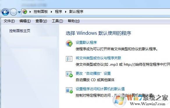 2、找到程序--默认程序里面,选择设置 默认程序。如图所示: