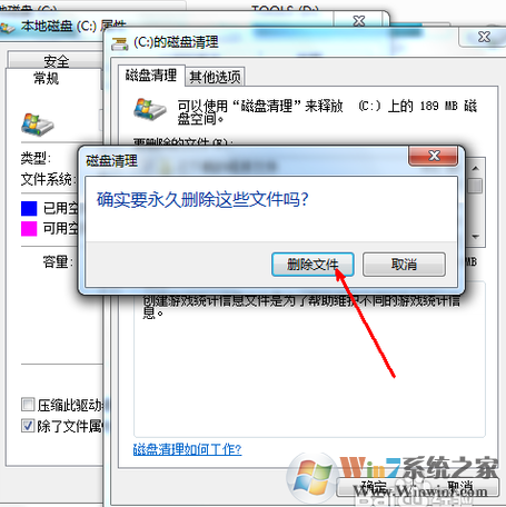 ?此时会有一个提示,要你确认是不是删除这些文件,如果你确认无误,点击删除文件即可。