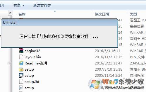 1、找到红蜘蛛安装程序,找到一个 Unist.exe的文件,如下图;