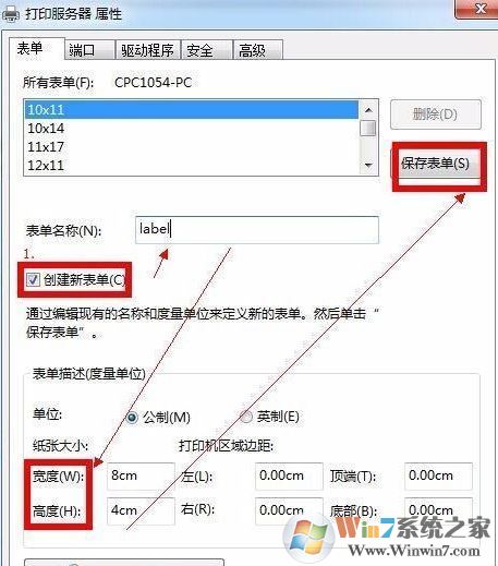 4、单击创建 “新表单”,为新表单命名,输入直尺量测好的宽度、高度, 7寸照片纸的大小是 178高 127宽 单位 mm 然后点击 “保存表单”即可,见下图。
