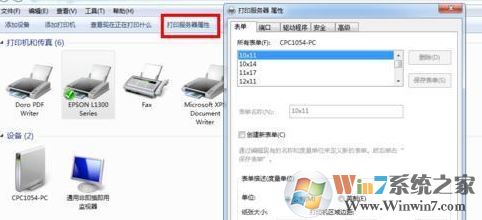 3、单击 “打印服务器属性”,会弹出一个设置对话框,后纸张设置的问题就是在这个对话框中设置的。