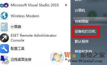 1、点击左下角的 开始菜单 按钮,点击打开【设备和打印机】;