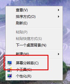1、在桌面上单击鼠标右键,屏幕分辨率;