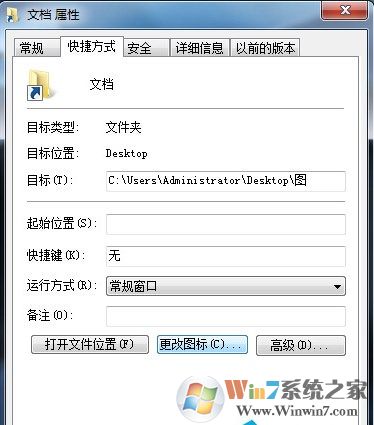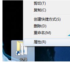1、首先先随便找一个程序的快捷方式,比如这里以文档图标为例,鼠标右击桌面上的文档,然后右击选择属性。