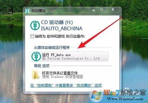 1、我们可以直接把申请的K宝插入到电脑的USB接口,这时电脑上会弹出自动播放窗口,点击“运行”菜单项。(如果没有弹出,那么到我的电脑下,打开H盘,然后运行FT_Auto.exe)