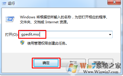 1、点击开始菜单,打开运行,输入“gpedit.msc”点击确定打开“组策略编辑器”;