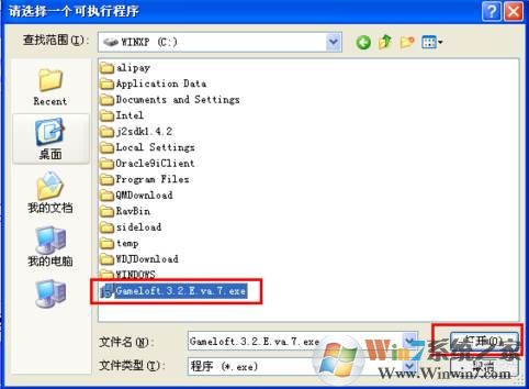 3、点击浏览,选择相应的游戏程序,比如*.exe,点击完成。