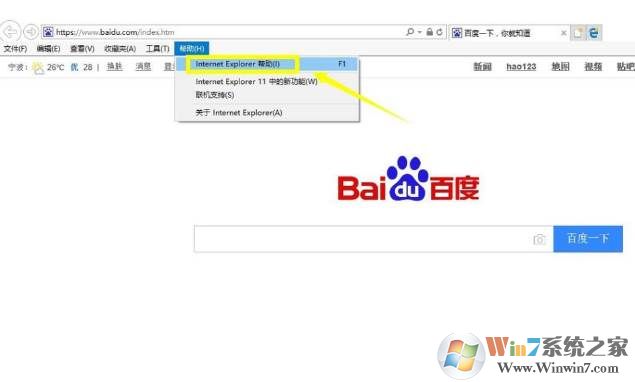 1、首先,打开IE浏览器,然后找到左上角的“帮助”并点击。