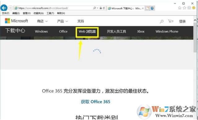 5、网页会自动判断你当前系统IE浏览器的版本,提供可升级的浏览器或是浏览器更新,我们下载后安装即可。如下图,微软推荐安装IE11浏览器。