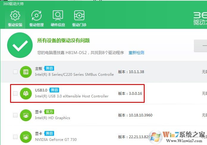 2、然后再开机,使用驱动精灵、驱动大师等软件把USB3.0驱动安装一下
