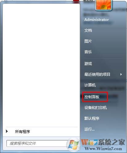 1、我们先打开win7开始菜单,点击控制面板进入;