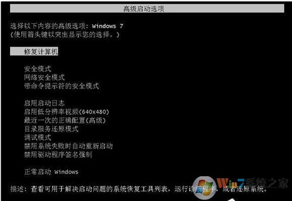 1、在Win7电脑进入不了系统时,大家首先重启电脑,在重启电脑的时候狂按F8键进入系统安全模式。如果是笔记本电脑没有重启键,那么就长按电源键强制关机,然后再重新开机。