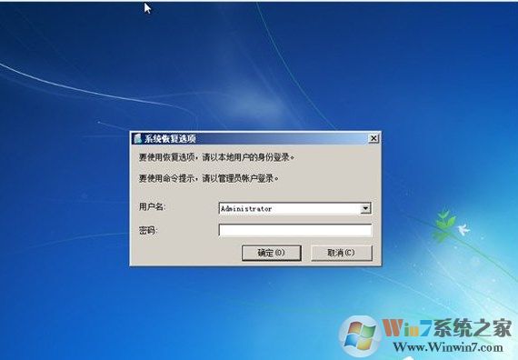 3、此时会弹出一个用户登录界面,如果你的win7系统需要密码,那么此时是需要输入密码的。