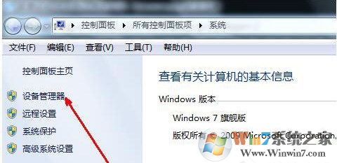 3、我们这里的操作需要你先用一个PS2接口鼠标来操作。操作完成才可以插入USB鼠标。在电脑属性页中,打开左上方的设备管理器,因为所有的电脑硬件全部都会显示在这里,硬件的驱动信息也是可以清楚的显示。