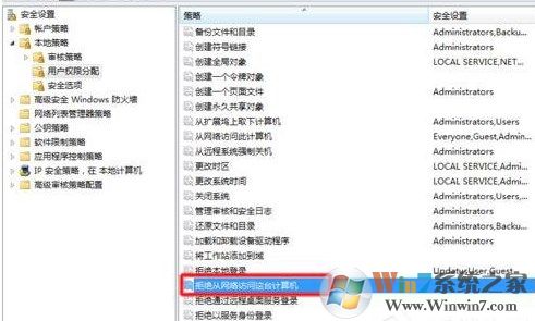 10、我们返回“用户权限分配”界面选择“拒绝从网络访问这台计算机”。