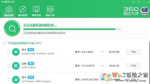 2、使用驱动管理软件,如: 360驱动大师网卡官方版 检测并安装摄像头驱动,如果是免驱摄像头则跳过这一步;