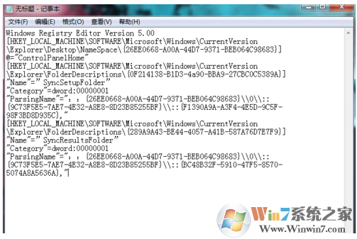 Windows Registry Editor Version 5.00[HKEY_LOCAL_MACHINE\SOFTWARE\Microsoft\Windows\CurrentVersion\Explorer\Desktop\NameSpace\{26EE0668-A00A-44D7-9371-BEB064C98683}]@="ControlPanelHome"[HKEY_LOCAL_MACHINE\SOFTWARE\Microsoft\Windows\CurrentVersion\Explorer\FolderDescriptions\{0F214138-B1D3-4a90-BBA9-27CBC0C5389A}]"Name"=”SyncSetupFolder”"Category"=dword:00000001"ParsingName"="::{26EE0668-A00A-44D7-9371-BEB064C98683}\\0\\::{9C73F5E5-7AE7-4E32-A8E8-8D23B85255BF}\\::{F1390A9A-A3F4-4E5D-9C5F-98F3BD8D935C},"[HKEY_LOCAL_MACHINE\SOFTWARE\Microsoft\Windows\CurrentVersion\Explorer\FolderDescriptions\{289A9A43-BE44-4057-A41B-587A76D7E7F9}]"Name"=”SyncResultsFolder”"Category"=dword:00000001"ParsingName"="::{26EE0668-A00A-44D7-9371-BEB064C98683}\\0\\::{9C73F5E5-7AE7-4E32-A8E8-8D23B85255BF}\\::{BC48B32F-5910-47F5-8570-5074A8A5636A},"