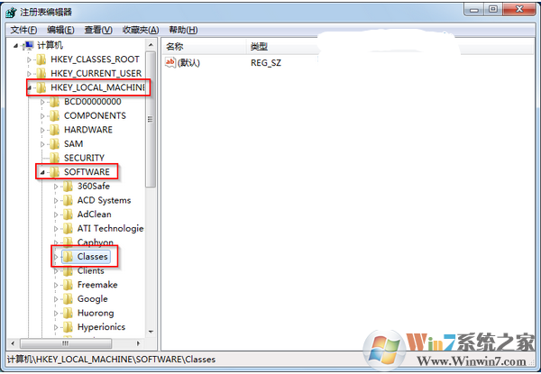 在开始/运行中输入“Regedit”打开注册表编辑器,