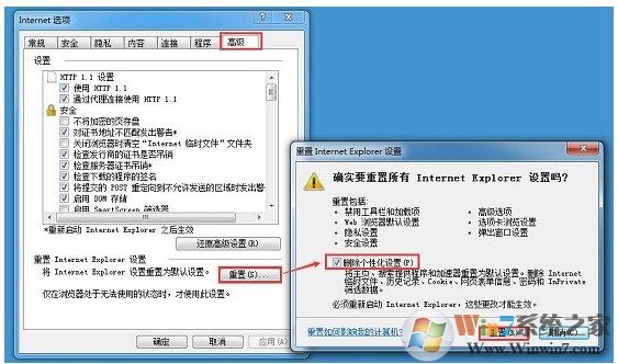 2、选择【高级】,点击【重置】,然后勾选【删除个性化设置】,点击【重置】,后续按提示操作即可;