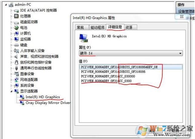 3.打开设备管理器,右击需要安装的显卡,点击属性,点击详细信息。属性点击下拉,选择硬件ID。