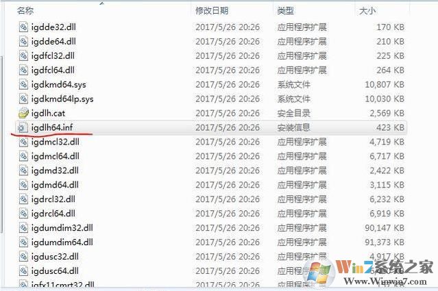 5.解压驱动包,找到驱动目录下的igdlh64.inf文件,路径:“X:\XXX\Intel Graphic 21.20.16.4678 Win7\Graphics\igdlh64.inf”。