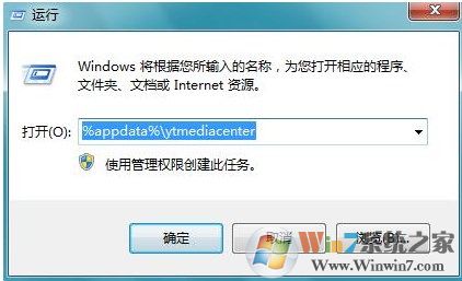 2、复制如下代码:%appdata%\ytmediacenter,点击确定,如图:
