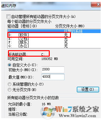 其一:虚拟内存不应该设在系统盘C盘(系统盘为其他盘同理),而应该设在其他非系统分区。