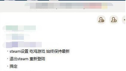 1、在Steam中对绝地大逃杀进行设置,设置始终保持最新,然后退出Steam,重新登录即可;
