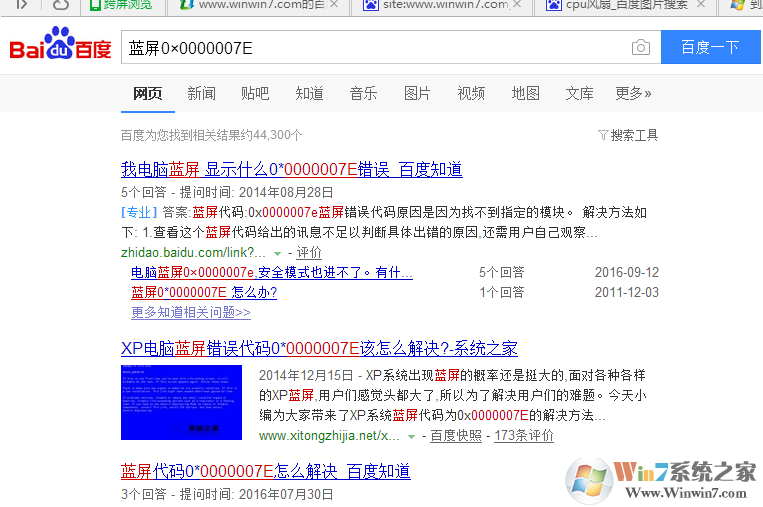 6、然后在百度输入相应的代码,就会出现你想要的解决方法了,例如代码0×0000007E ,我们只需输入蓝屏0×0000007E 即可