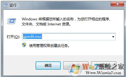5、点击开始按钮,点击运行,在运行框中输入gpedit.msc,然后点击确定;