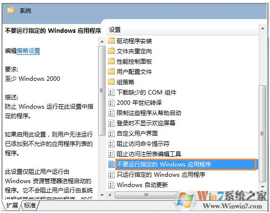 7、在右边选项中,找到这样一个选项,即不要运行指定的应用程序,用鼠标左键双击打开;