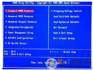 Standard CMOS Features(标准CMOS功能设置):使用此选项可对基本的系统配置进行设定,如时间、日期、IDE设备和软驱参数等。