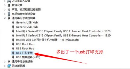 6、此时我们在设备管理器中可以看到一个多出来了usb打印支持;
