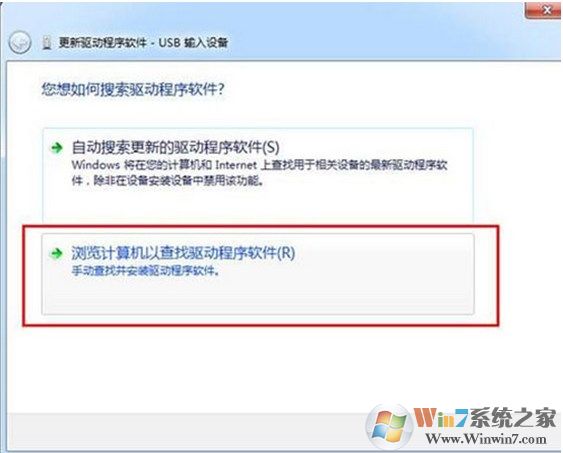 3、在弹出的窗口中点击浏览“计算机以查找驱动程序软件”。