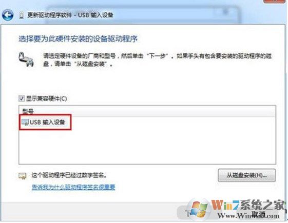 4、在弹出的窗口中选择“USB输入设备”,点击“下一步”。