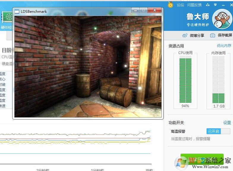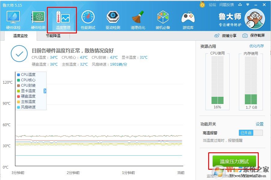 3、打开硬件检测,对cpu、主板和显卡进行温度压力测试