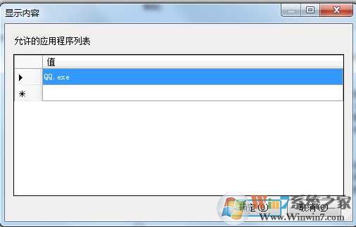 3、然后在值中输入允许运行的程序文件名如QQ.exe;